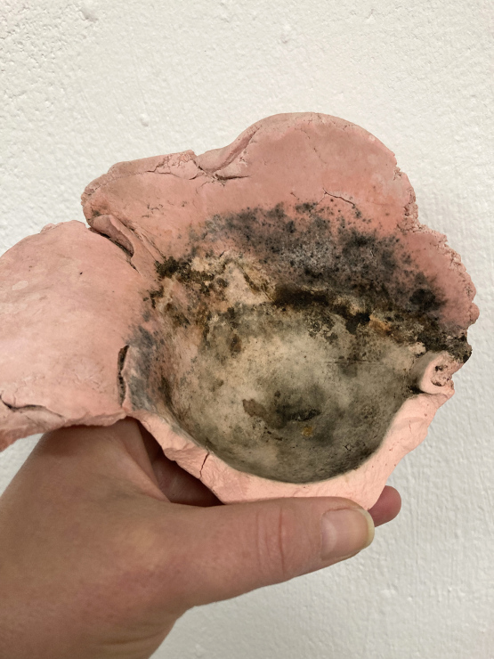 lufttrocknende Modelliermasse (Abdruck), Oilstickspuren, Messing